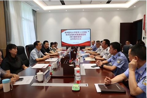 签约仪式上,曾辉代表贵州省强制戒毒康复医院(贵州省特类人员强制隔离戒毒所)表示对江宣成一行的表示热烈欢迎,会上介绍了单位的发展历程、机构设置、人才队伍、科室情况、未来双方合作展望等。同时利用宣传片详细介绍了单位情况及未来规划发展。江宣成表示,期望以此次交流合作为契机,双方按照资源共享、优势互补、互利共赢、协同发展的原则,共同建立健全协同育人机制,积极推进人才培育、科学研究、成果转化、技术支持等方面的共同发展进步。