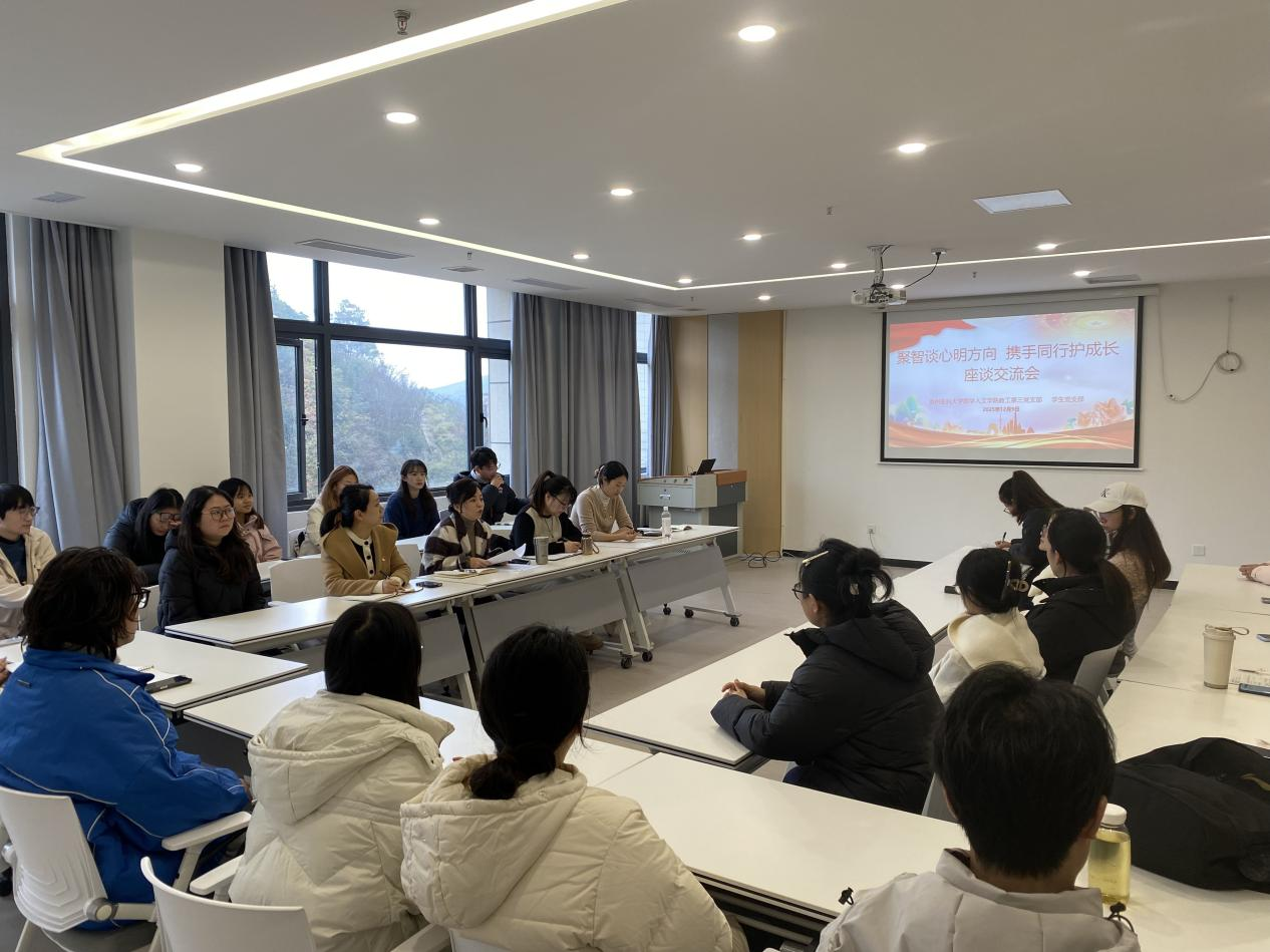2025年12月9日,公司教工第三党支部与员工党支部在弘远楼三楼联合举办“聚智谈心明方向・携手同行护成长”主题党日活动,两个党支部共计62人参加,其中48名员工(党员、入党积极分子)分座谈交流组和团体辅导组同步开展活动。