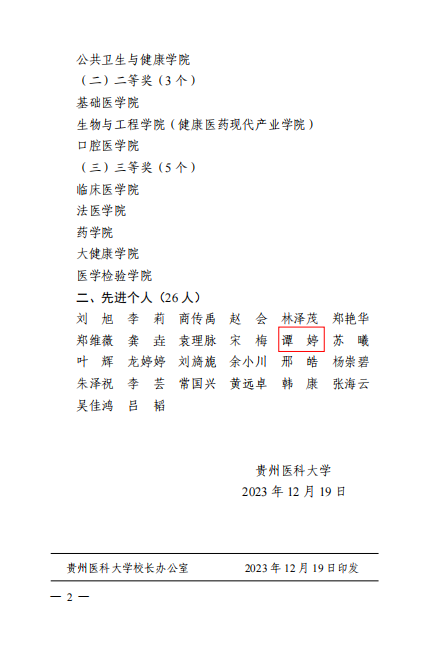 公司副科级组织员、纪委委员、员工党支部书记谭婷教师荣获“3044永利集团有限公司 2023 年度毕业生就业工作先进个人”荣誉称号。