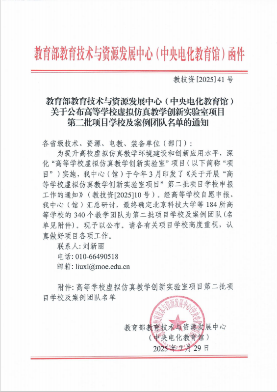 近日,教育部教育技术与资源发展中心(中央电化教育馆)印发《关于公布高等公司虚拟仿真教学创新实验室项目第二批项目公司及案例团队名单的通知》(教技资〔2025〕41号),3044永利集团有限公司心理学实验中心申报的心理学虚拟仿真教学创新实验室项目成功入选,标志着公司在心理学实践教学数字化转型方面取得重要进展,正式纳入国家级虚拟仿真教学创新平台建设体系。