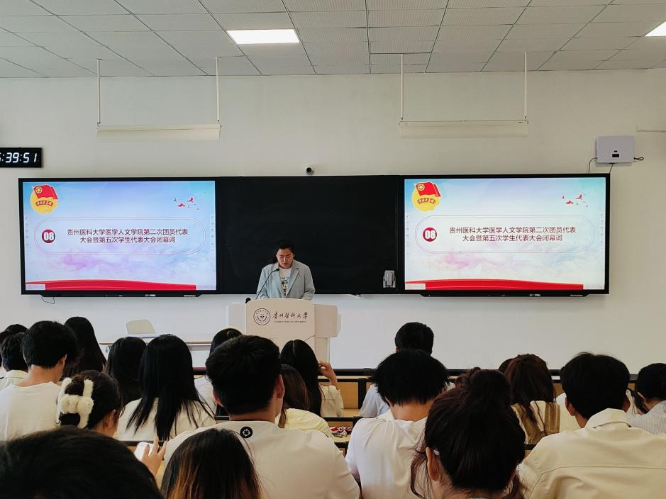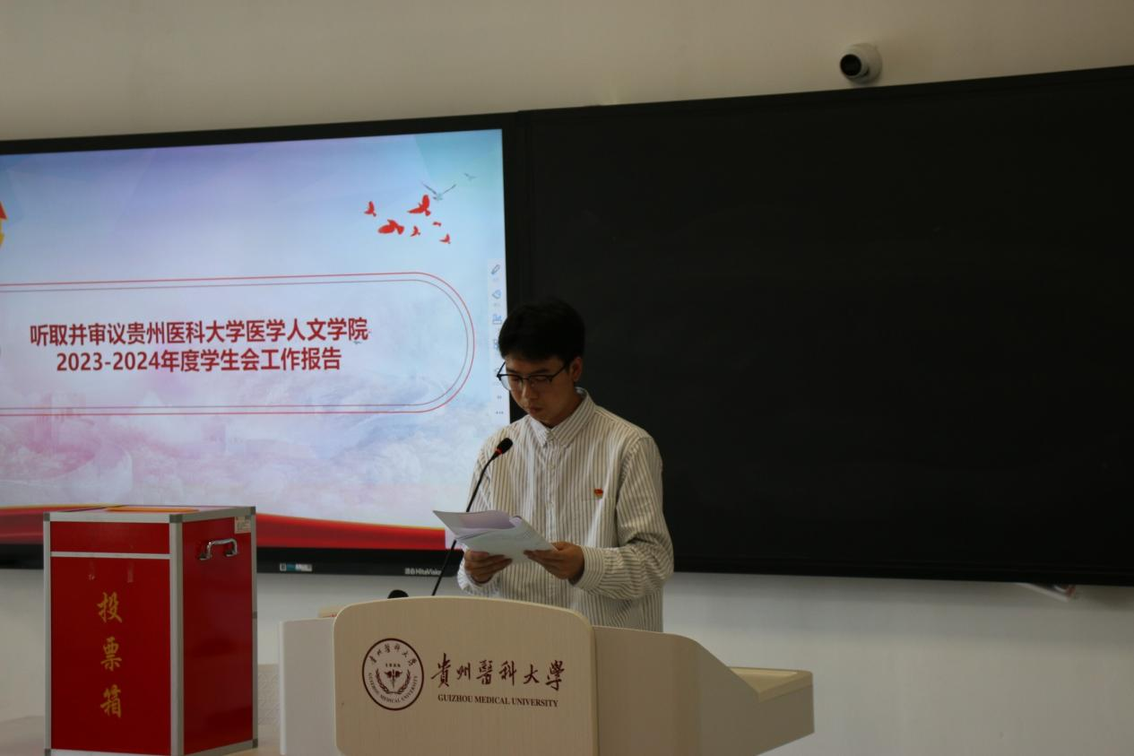 张贤致开幕词,这次大会是在全院师生深入学习贯彻落实习近平新时代中国特色社会主义思想,学习党的二十大精神的背景下,奋力谱写"百年贵医"建设高质量发展新篇章背景下所召开的一次盛会。因此,我们要务必开好这次团(学)代会。