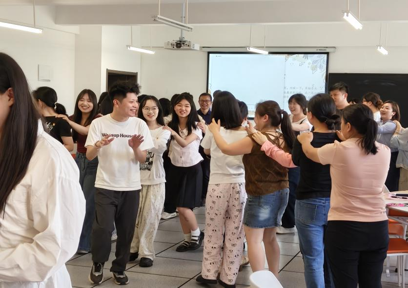在活动环节,2022级应用心理研究生党员何秋月为带领人。首先,何秋月向各位党员同志介绍了团体心理辅导活动的要求。接着,通过“正话反说”“雨点变奏曲”等破冰游戏充分调动了成员积极性,活跃了现场气氛。随后,带领人通过“争当龙头”的心理活动引导成员思考成败的归因,并介绍心理学归因理论,启发成员正确看待成败。