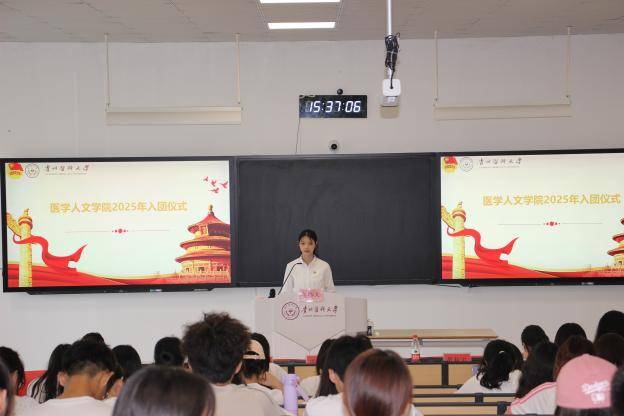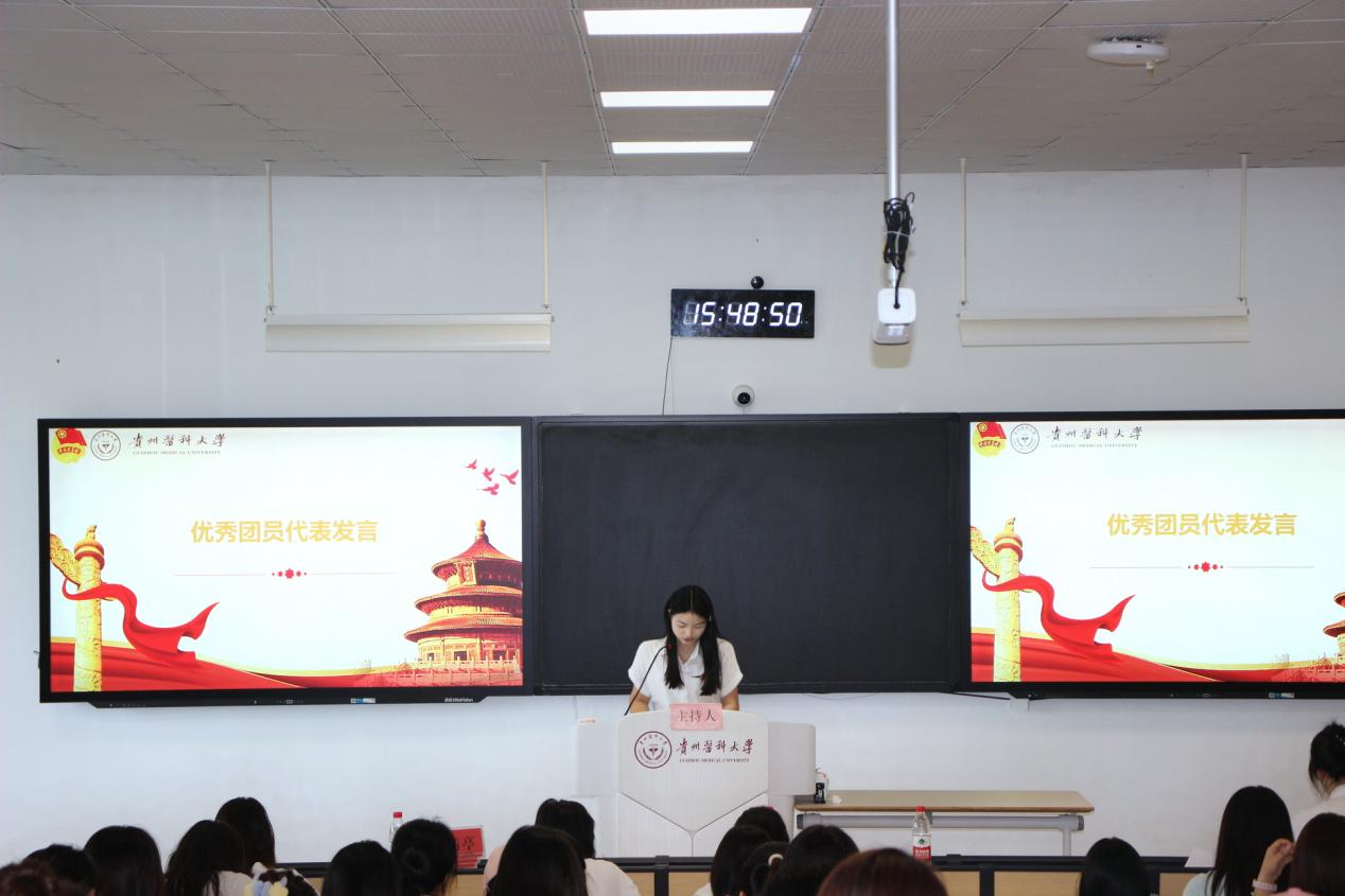 优秀团员代表罗娅婷同学发言,分享了自己入团以来的成长与感悟,她希望新团员们能够珍惜这份荣誉,在学习中保持求知若渴的态度,在生活中传递温暖与正能量,让共青团员的称号在奋斗中熠熠生辉。