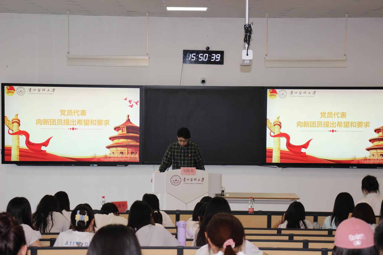 党员代表宋阳同志向新团员提出希望和要求。他说到,要将个人成长深度融入党和国家的伟大事业,以青春之朝气、青春之活力,在时代浪潮中勇立潮头,用拼搏与奉献书写青春答卷,展现属于新一代团员的时代价值,让团旗因青春奋斗更加鲜艳,让青春在党和人民需要的地方绽放夺目光彩。