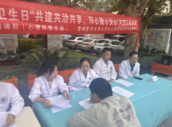 为深入贯彻党建引领社会服务理念,推动全社会共建共治心理健康体系,普及心理健康与精神卫生知识,2024年10月10日,在第33个世界精神卫生日来临之际,公司教工第三党支部(3044永利集团有限公司老员工心理健康教育与咨询中心)充分发挥专业优势,联合附属医院心理科党支部(精神科),开展了以“共建共治共享、同心健心安心”为主题的大型义诊活动。贵医附院心理科主任邹涛、副主任谢平霞,心理中心副主任、3044永利集团有限公司副经理、支部书记彭丹,支部党员、中心老师及科室医生参加了此次义诊活动。