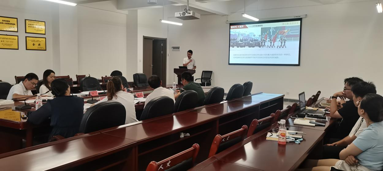 为进一步加强团队建设、持续提升教学质量、促进新教师更好更快地进入角色,军事理论教研室于9月3日在善思楼二楼会议室开展了《军事理论》教学试讲暨经验分享活动。